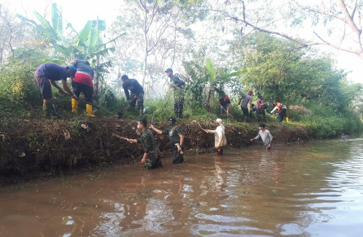 EDUPUBLIK, Kab Sumedang –  Satu lagi seakan tanpa gembar-gembor, Satgas Citarum Harum Sektor 21- 15 di Kabupaten Sumedang, pada hari Selasa, 25 Juni 2019 bersama warga setempat membersihkan bantaran sungai, dan ekosistem di wilayah Desa Sayang Kecamatan Jatinangor  Kabupaten Sumedang: