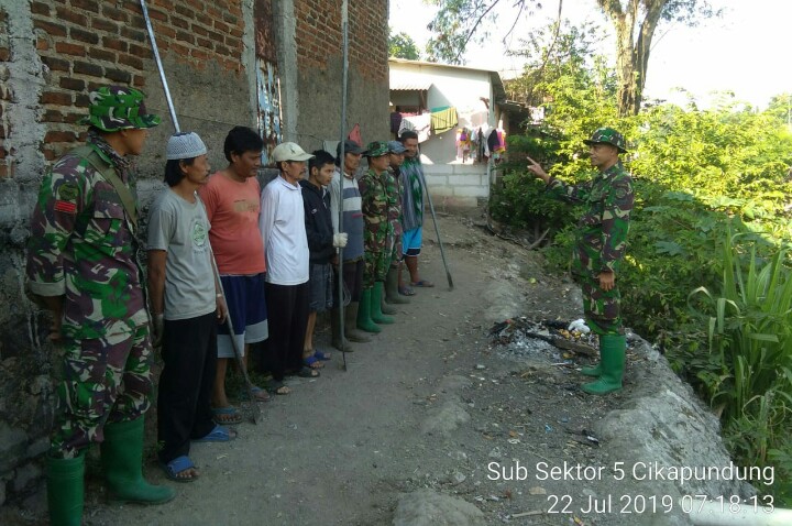 “Yang kami garap itu, di antaranya pembersihan sampah dan rumput di bantaran sungai Cikapundung Desa Sukapura RT 04 RW 02 Kecamatan Dayeuhkolot. Ini kami lakukan dengan melibatkan sejumlah masyarakat,” jelas DansubSektor 5 – 21 Serda Tanto Mujiyanto.