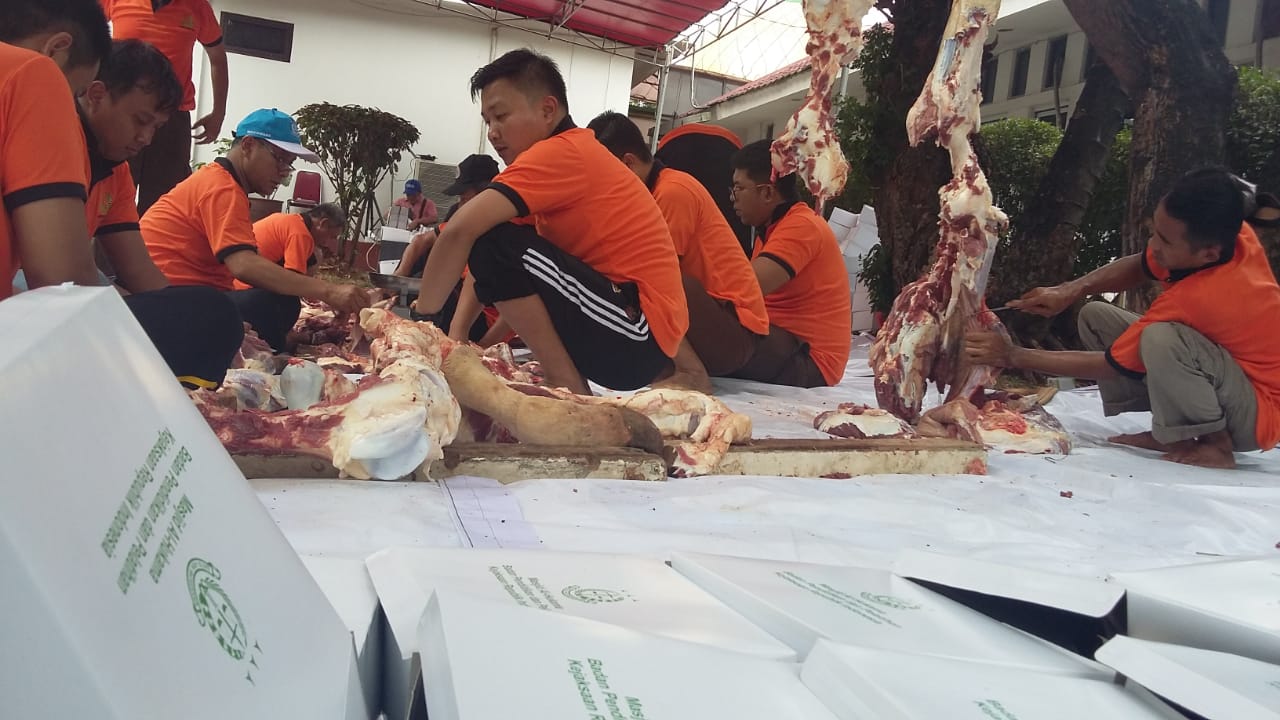 “Pelaksanaan penyembelihan hewan Qurban didedikasikan sebagai pengabdian kepada masyarakat, bangsa dan negara. Pelaksanaan penyembelihan hewan Qurban di maknai wujud ketakwaan kita kepada Allah SWT, dan disuatu sisi wujud kepedulian kepada sesama atau masyarakat yang memerlukan sentuhan dari kita semua,” ucap Prasetyo. [iwan]