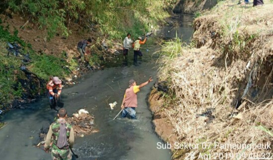 Satgas Citarum Sektor 21- 7 pameungpeuk Giat Pembersihan Sampah Di Sungai Citaluqtuk