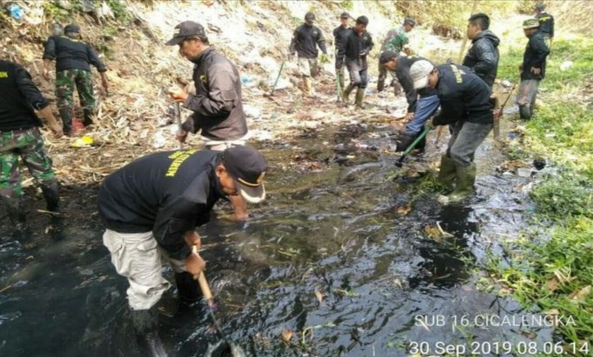 “Pukul 08.00 Anggota satgas melaksakan giat pembersihan rumput liar yang mengganggu bantaran sungai dan pembersihan sampah yang menghambat aliran air di sungai dengan hasil pembersihan sepanjang kurang lebih 60 meter dan hasil sampah sebanyak kurang lebih 52 kg”, papar Dansubsektor 16 Cicalengka.