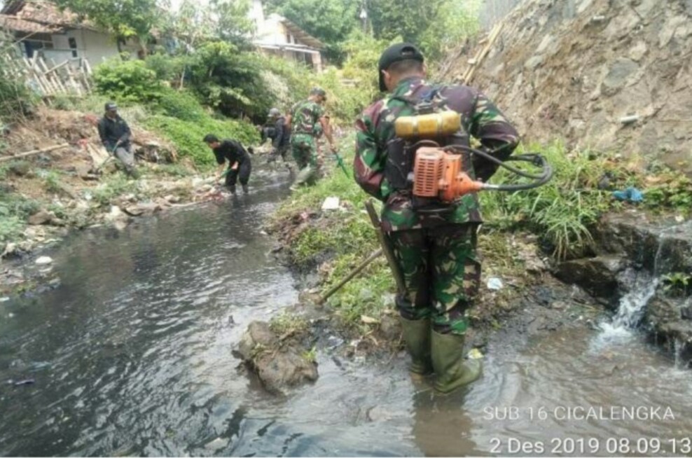 “Setelah melaksanakan apel pagi pada pukul 08.00 Anggota satgas mulau melaksakan giat pembersihan rumput liar yang mengganggu bantaran sungai dan pembersihan sampah yang menghambat aliran air di sungai dengan hasil pembersihan sepanjang kurang lebih 64 meter dan hasil sampah yang dapat diangkat sebanyak kurang lebih 57 kg”, kata Dansubsektor 16 Cicalengka.