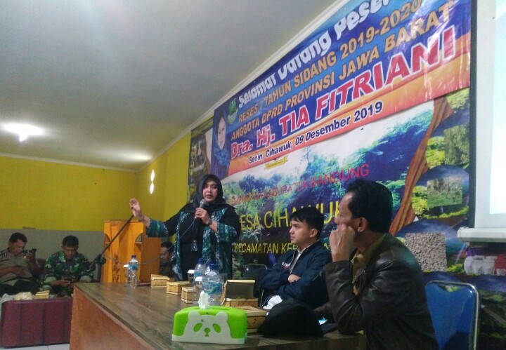 EDUPUBLIK, Kab Bandung – Giat reses ke I tahun 2019-2020, Dra Hj Tia Fitriani Anggota DPRD Provinsi Jawa Barat dari Fraksi NasDem, kali ini di Kampung Puncak Mulya Desa Cihawuk Kecamatan Kertasari RT 02 RW 06 Kabupaten Bandung, Senin (09/12/2019), kegiatan ini merupakan kewajiban anggota dewan secara konstitusional, untuk menyerap aspirasi maupun mensosialisasikan program pelaksanaan kegiatan pembangunan dan aktivitas sebagai anggota dewan.