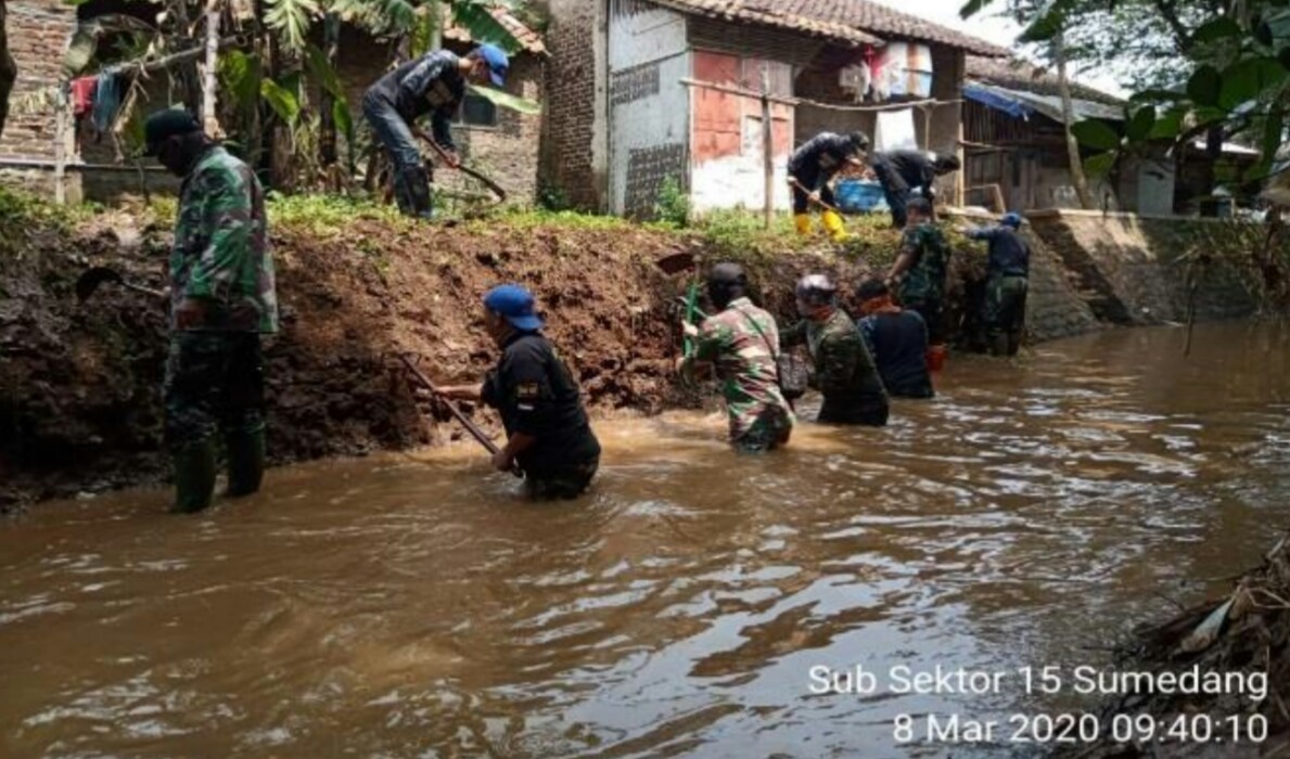 Satgas Citarum Sektor 21-15 Sumedang Bebersih Sungai Cikeruh Sepanjang 250 Meter