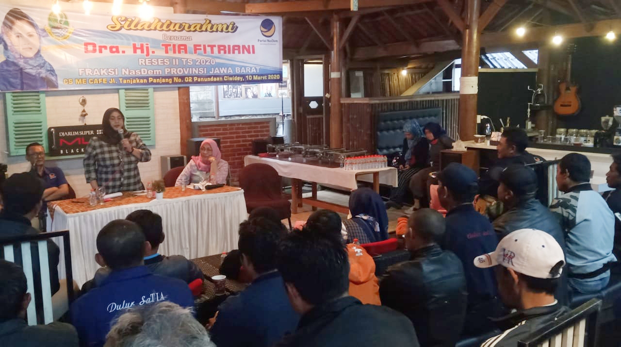 EDUPUBLIK, Bandung – Gelaran reses ke II tahun 2020, Dra Hj Tia Fitriani Anggota DPRD Provinsi Jawa Barat dari Fraksi NasDem , kali ini di Desa Panundaan Kecamatan Ciwidey, Selasa (20/3/2020), kegiatan ini merupakan kewajiban anggota dewan secara konstitusional, untuk menyerap aspirasi maupun mensosialisasikan program pelaksanaan kegiatan pembangunan dan aktivitas sebagai anggota dewan.