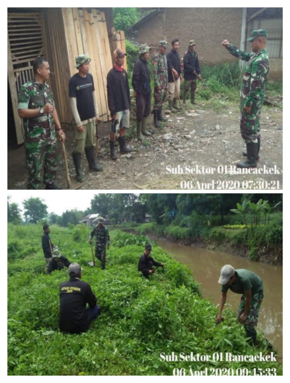 Satgas Subsektor 1 Rancaekek bersama anggota Gober lakukan pembersihan dan babad rumput, mengangkat sedimentasi (endapan tanah), dan sampah sebanyak 250 Kilogram dari aliran sungai Citarik desa Sangiang kecamatan Rancaekek Kabupaten Bandung.