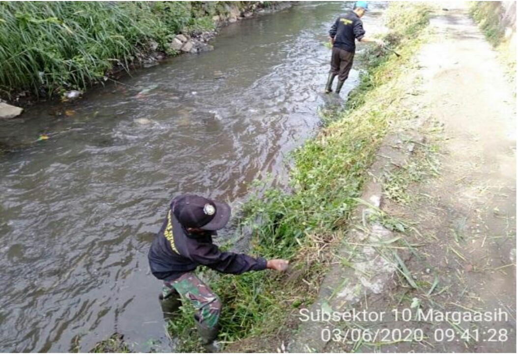 EDUPUBLIK, Kab Bandung – Kembali dan fokus pada tugas Subsektor 10 Margaasih Kab. Bandung yang tergabung pada Satgas Citarum Harum Sektor 21 yang dikomandoi Kol. Inf. Yusep Sudrajat, pada Rabu, 3 Juni 2020 bersama warga dekat bantaran sungai Cigugur Rw 02 desa Margaasih kabupaten Bandung melakukan karya bakti di bantaran sungai dengan target kerja 120 meter lebar 3 meter.