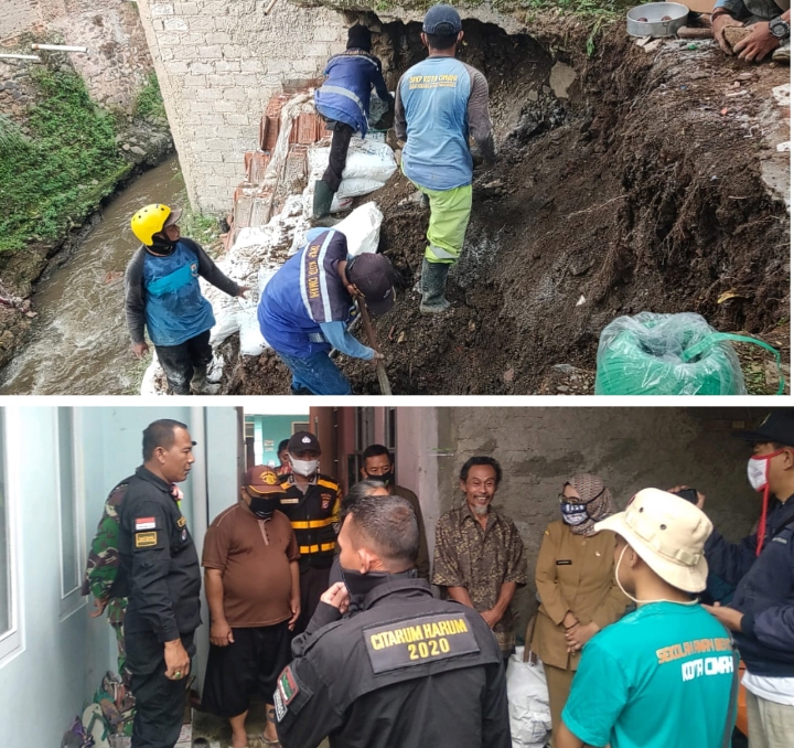 Menurut satgas, kegiatan dibantu warga masyrakat setempat dan personil DPKP Cimahi Selatan untuk melakukan penanganan penanggulan sementara dengan karung berisi pasir dan batu sebagai antisipasi agar bangunan rumah warga yang berdekatan dengan sungai tidak terbawa longsor, penanggulan sementara yg melibatkan dlm kegiatan tersebut: