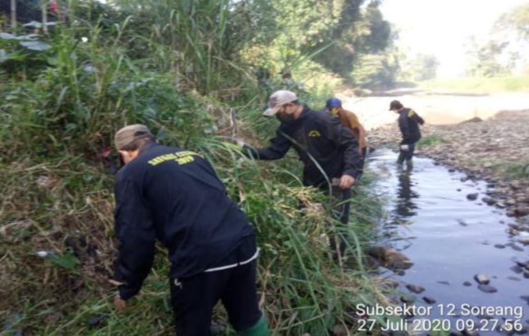 EDUPUBLIK, Kab Bandung – Penataan dan giat bebersih sungai dari rumput liar dan sampah dalam program Citarum harum tetap berjalan, dan juga Satgas Citarum Harum Sektor 21 subsektor 12 bersama warga masyarakat sekitar, setiap harinya tetap melaksanakan giat patroli dan bersih-bersih sungai, Senin (27/7/2020).