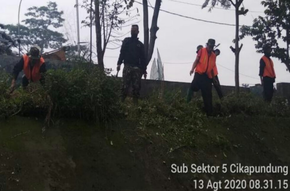 “Karya bakti dilakukan guna membersihkan sampah dan rumput liar yang ada di aliran dan bantaran sungai Cikapundung. Kurang lebih di sepanjang 80 Meter,” ujar Satgas Subsektor 5 Cikapundung.