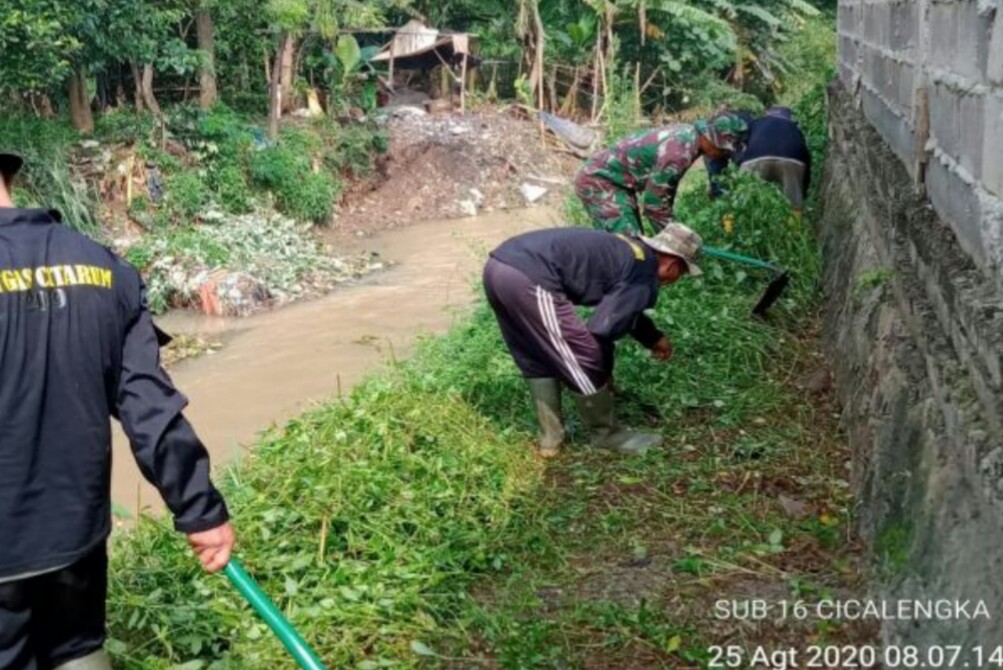 “Setelah melaksanakan apel pagi pada pukul 08.00 Anggota satgas mulau melaksakan giat pembersihan rumput liar yang mengganggu bantaran sungai dan pembersihan sampah yang menghambat aliran air di sungai dengan hasil pembersihan sepanjang kurang lebih 65 meter dan hasil sampah yang dapat diangkat sebanyak kurang lebih 48 kg”, kata Dansubsektor 16 Cicalengka.