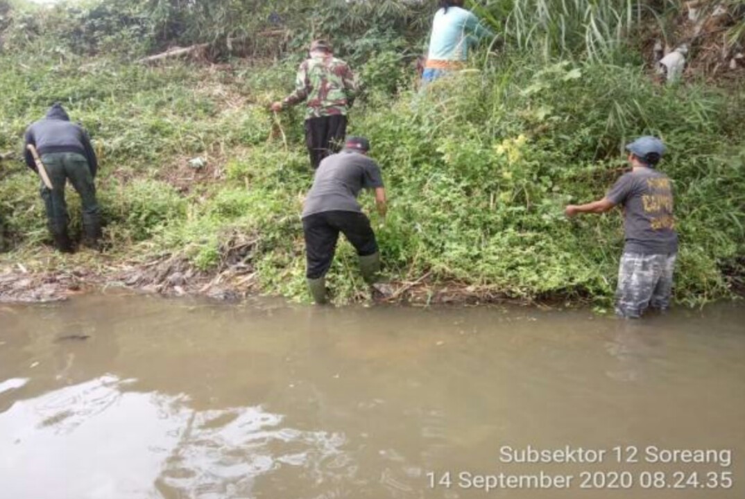 EDUPUBLIK, Kab Bandung – Giat penataan dan bebersih sungai dari rumput liar dan sampah dalam program Citarum Harum tetap berjalan, dan juga Satgas Citarum Harum Sektor 21 subsektor 12 bersama warga masyarakat sekitar, setiap harinya tetap melaksanakan giat patroli dan bersih-bersih sungai, Senin (14/9/2020).