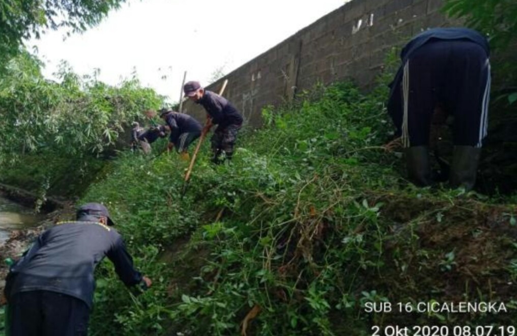 “Setelah melaksanakan apel pagi pada pukul 08.00 Anggota satgas mulau melaksakan giat pembersihan rumput liar yang mengganggu bantaran sungai dan pembersihan sampah yang menghambat aliran air di sungai dengan hasil pembersihan sepanjang kurang lebih 63 meter dan hasil sampah yang dapat diangkat sebanyak kurang lebih 46 kg”, kata Dansubsektor 16 Cicalengka.