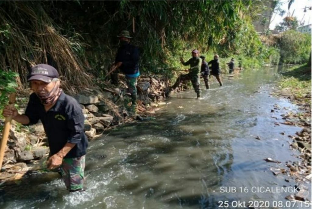 “Setelah melaksanakan apel pagi pada pukul 08.00 Anggota satgas mulau melaksakan giat pembersihan rumput liar yang mengganggu bantaran sungai dan pembersihan sampah yang menghambat aliran air di sungai dengan hasil pembersihan sepanjang kurang lebih 65 meter dan hasil sampah yang dapat diangkat sebanyak kurang lebih 48 kg”, kata Dansubsektor 16 Cicalengka.