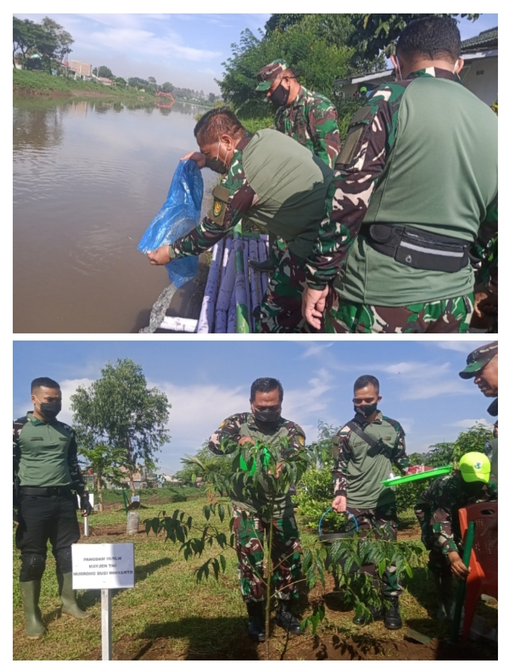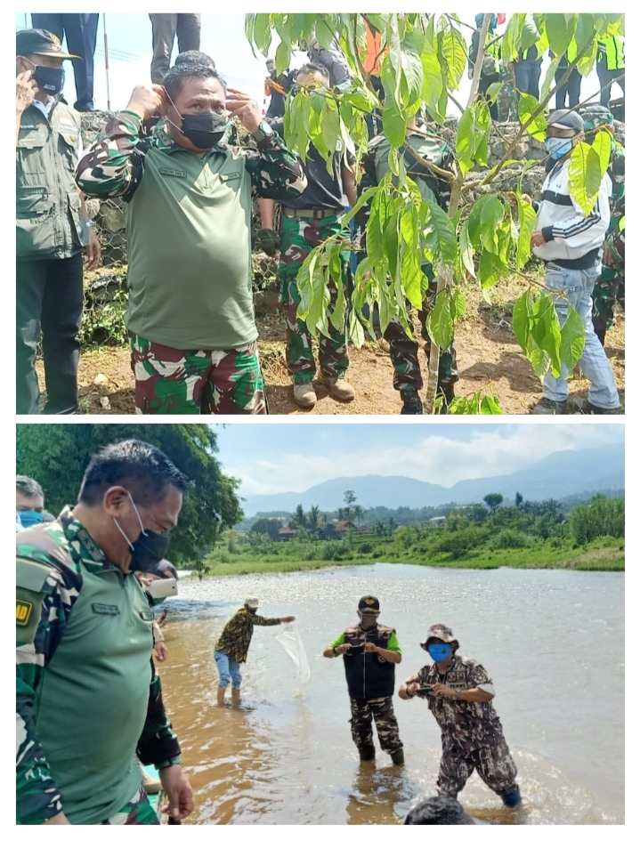 EDUPUBLIK, Kab Bandung – Giat penebaran ikan di sungai serta penanaman bibit tanaman produktif oleh Panglima Kodam III Siliwangi Mayjen TNI Nugroho Budi Wiryanto di desa Sukamaju yang merupakan wilayah kerja Sektor 04 Majalaya setelah mengunjungi Sektor 5 telah berlangsung pada hari Kamis (11/02/2021) dari pukul 09.30 hingga 11.00 wib.