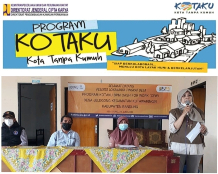 EDUPUBLIK, Kab Bandung -Program Cash For Work (CFW) Kota Tanpa Kumuh (KOTAKU) saat ini sedang berjalan. Program padat karya Kementerian PUPR yang bertujuan untuk menanggulangi pemulihan ekonomi akibat pandemi yang berdampak pada masyarakat berpenghasilan rendah.
