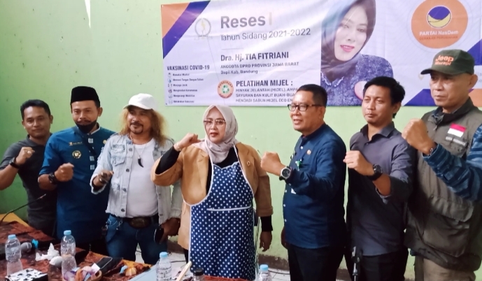 Tia Fitriani Anggota DPRD Provinsi Jawa Barat dari Fraksi NasDem Persatuan Indonesia, tak hanya menyapa dan bersilaturahmi dengan masyarakat di daerah pemilihan (dapil) 2 kabupaten Bandung, ia juga mengisinya dengan mengadakan Pelatihan Mijel yaitu Minyak jelantah (mijel) Ampas kopi, sayuran dan kulit buah buahan menjadi sabun mijel Eco Enzym yang bekerjasama dengan Pusdiklat Dulur Satia di GOR kelurahan Jelekong Kecamatan Baleendah Kabupaten Bandung , Jumat (10/12/2021)