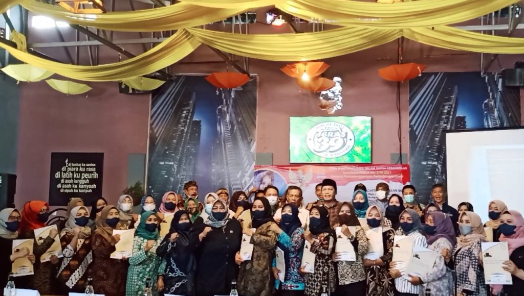 EDUPUBLIK, Kab Bandung – Pada giat Citra Bhakti / Parlemen dalam Sketsa Kebangsaan, Anggota DPRD Provinsi Jawa Barat Drs. Hj. Tia Fitriani yang didampingi kang Komar Bebeb (artis preman pensiun) menggelar sosialisasi Perda Nomor 3 Tahun 2021 tentang Penyelenggaraan Perlindungan Anak di Teras 39 desa Ciheulang RW 4 kecamatan Ciparay, Kabupaten Bandung, Kamis (16/12/2021).