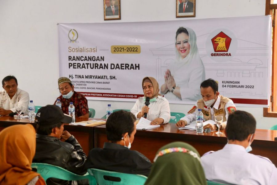 EDUPUBLIK, Kab. Kuningan – Anggota DPRD Jawa Barat Dapil XIII, Tina Wiryawati melaksanakan sosialisasi Rancangan Peraturan Daerah (Raperda) terkait Rencana Tata Ruang Wilayah (RTRW) Pemerintah Provinsi Jawa Barat, di Desa Nangka Kecamatan Kadugede Kabupaten Kuningan, Jumat (4/2/2022).