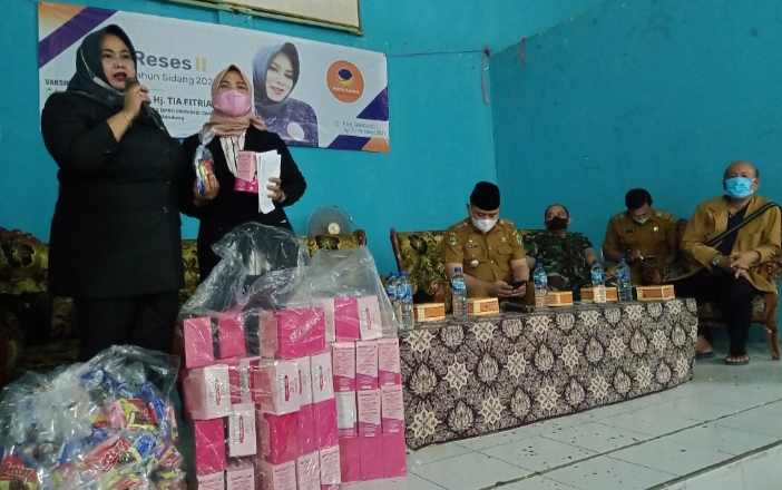 Dra.Hj.Tia Fitriani mengungkapkan, pada reses-reses sebelumya di isi dengan vaksinasi, tapi Alhamdulillah saat ini sudah berkurang Insya Allah vaksinasi 80% sudah terpenuhi. Dengan adanya pandemi merupakan sejarah bagi kita semua, tapi itu di ambil hikmah karena itu suatu pelajaran buat kita untuk menjaga kesehatan dan kebersihan”,ujarnya.