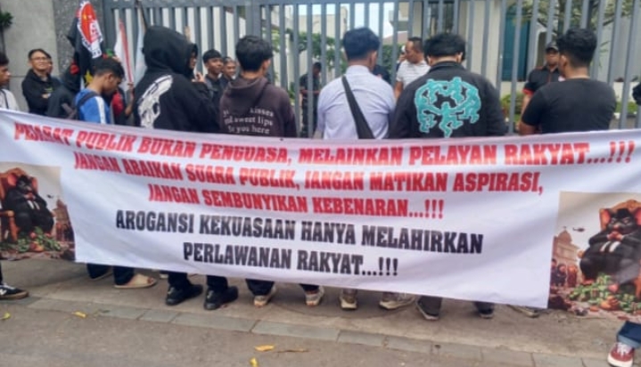 “Penyesuaian anggaran ini cukup drastis. Dari Rp12,5 miliar menjadi Rp3,9 miliar di tahun 2025, dan itu hanya untuk tahap awal,” ujar Aldi dalam orasinya.