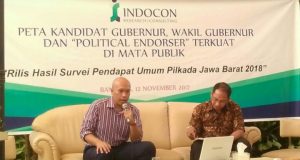 EDUPUBLIK, Bandung – Perebutan kursi nomer satu di Jawa Barat sangat cair. Banyak faktor yang mempengaruhi seorang calon bisa memenangkan pertarungan. Peran endorser tokoh dan pasangan yang dipilih oleh seorang cagub akan mempengaruhi tingkat keterpilihan seorang calon. Survei Indocon yang dirilis Minggu (12/11) di Bandung menyebutkan, Jokowi menjadi faktor political endorser tertinggi disusul Prabowo, Ahmad Heryawan (Aher) dan Megawati. “Kandidat ...