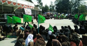 EDUPUBLIK, Sukabumi – Ribuan massa berkumpul di Lapangan Merdeka Sukabumi pada Sabtu Pagi, 7 April 2018 . Massa yang datang dari berbagai elemen masyarakat ini membubuhkan tandatangan pada kain berukuran 15 meter sebagai bentuk dorongan pada pemerintah agar KH Ahmad Sanusi segera dianugerahi sebagai pahlawan nasional. Tidak hanya masyarakat, sejumlah tokoh kota Sukabumi, unsur petinggi kepolisian, unsur pemerintah dan ulama ...