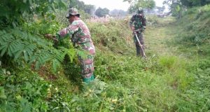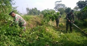 Lapor, Satgas Citarum Sektor 21- 4 Bersihkan Sampah & Babad Rumput di Aliran Sungai Cidurian